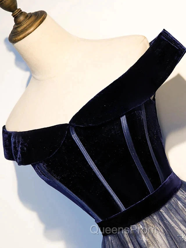 A-Line Elegant Floral Evening Prom Formal Evening Dress Off Shoulder Short Sleeve Sweep / Brush Train Tulle With Pleats Pattern / Print