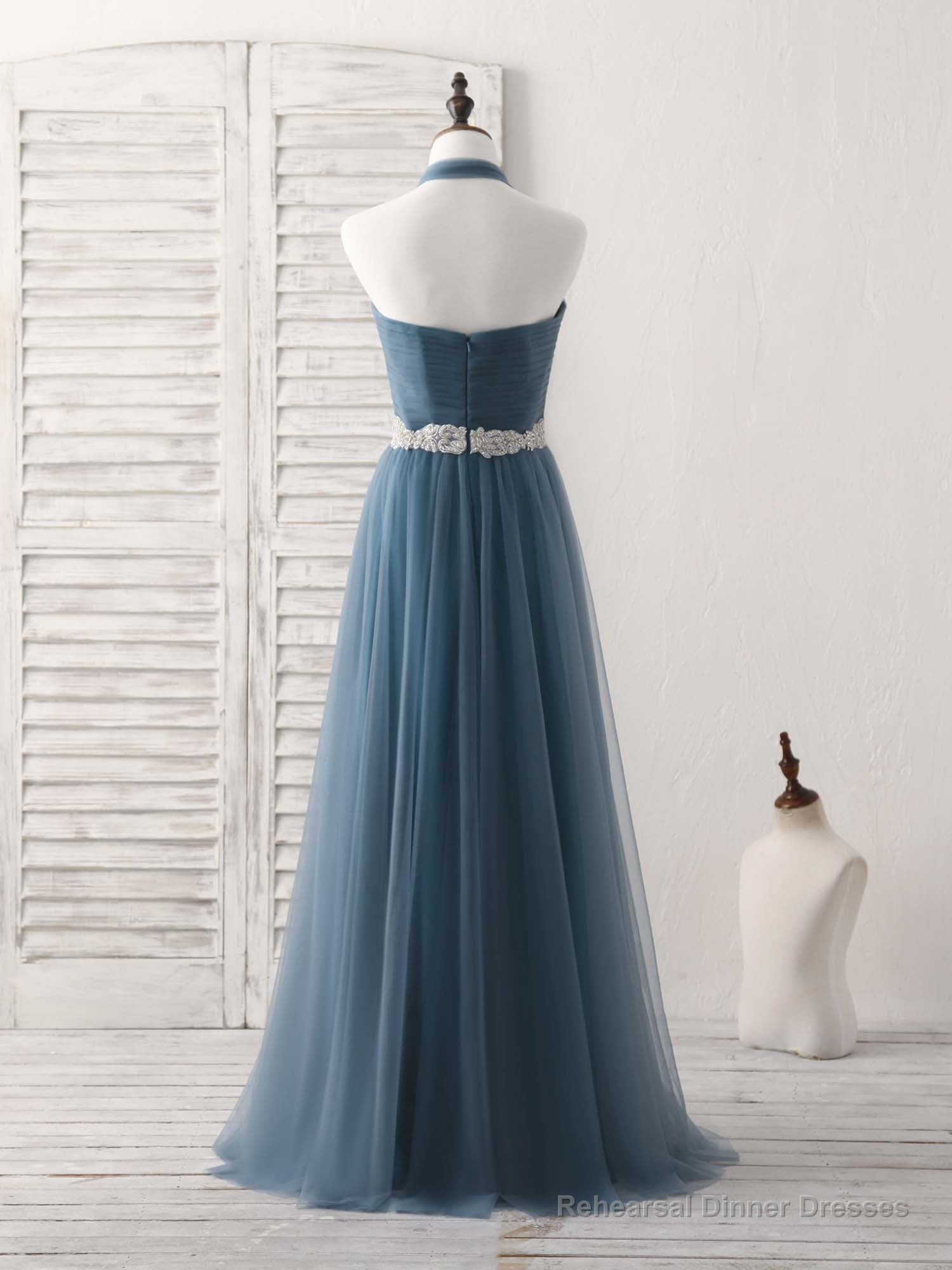 A-Line Gray Blue Tulle Long Bridesmaid Dress Gray Blue Prom Dress