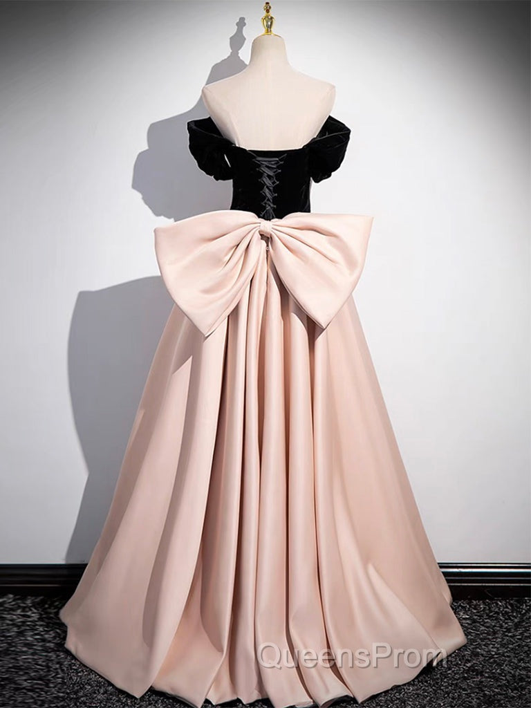 A-Line Off Shoulder Satin Champagne Long Evening Prom Dress, Champagne Long Evening Dress