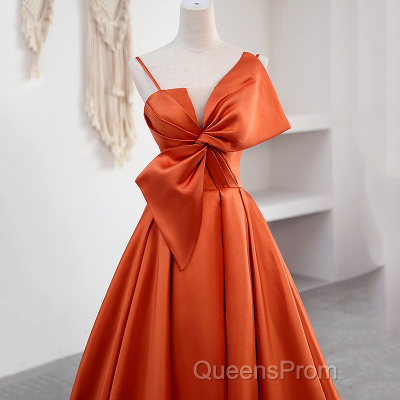 A Line Orange Satin Evening Prom Dress Sweet Bow Birthday Party Dress