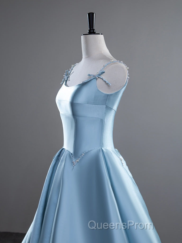 A-Line Satin Blue Long Evening Prom Dress, Blue Long Evening Dress