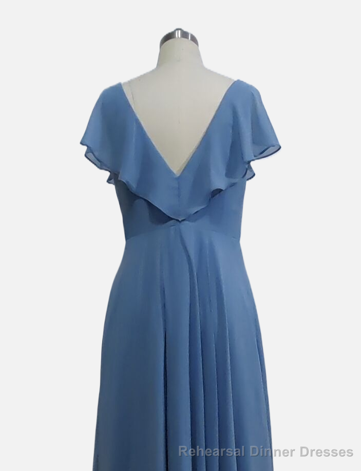 A-line Short Sleeves Chiffon V-neck Ruffles Floor-Length Bridesmaid Dress