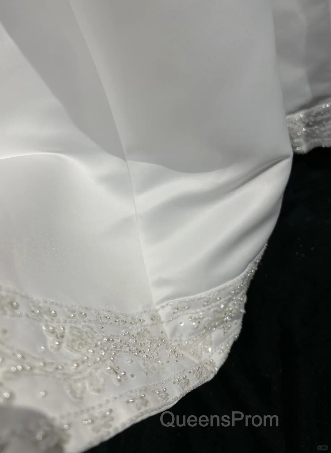 A-Line Spaghetti Strap Beaded Satin Long Evening Prom Dress White Wedding Dress Graduation Evening Prom Dress