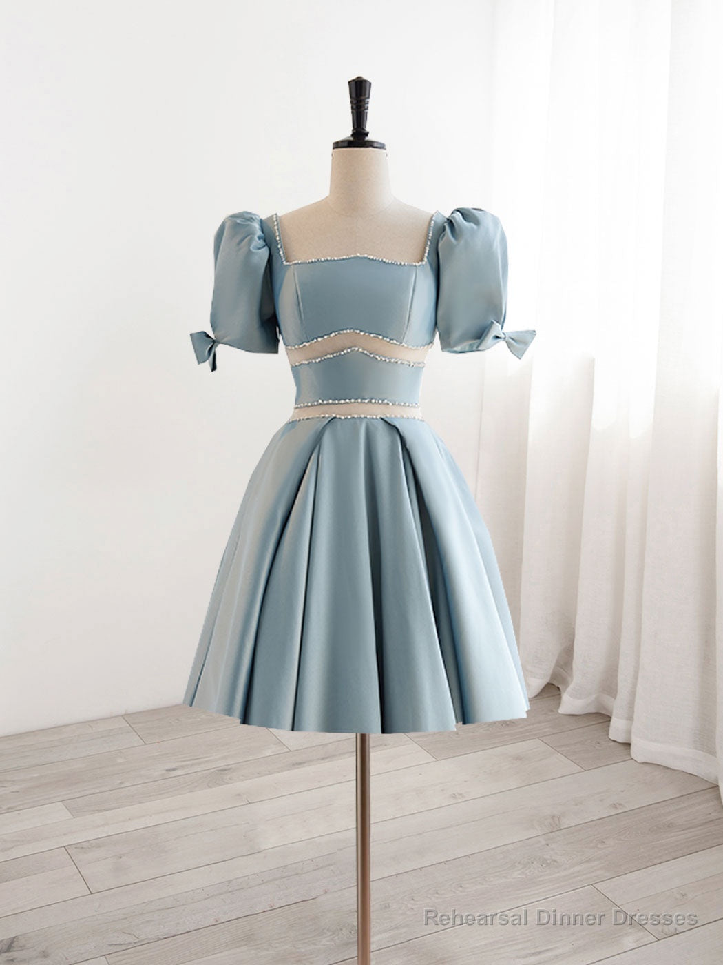 A-Line Square Neckline Blue Short Prom Dress, Cute Blue Homecoming Dress