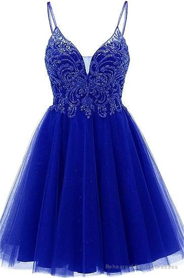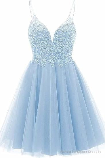 A-line Straps Appliques Tulle Short Homecoming Dresses