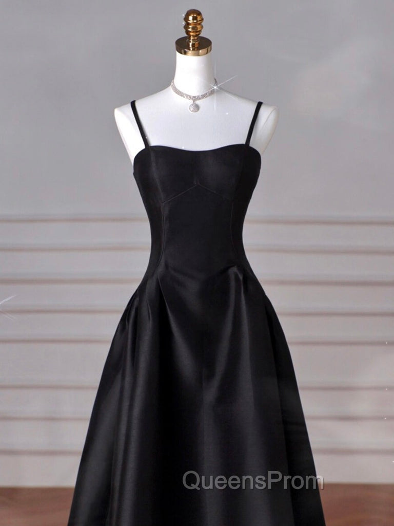 A-Line Sweetheart Neck Satin Black Long Evening Prom Dress, Black Long Evening Dress