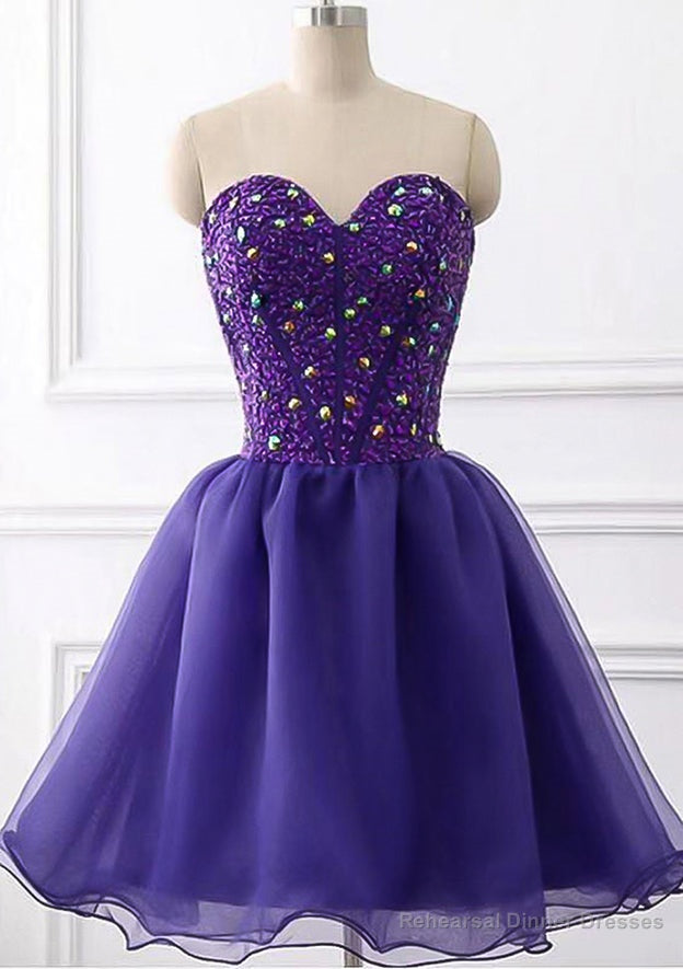 A-line Sweetheart Sleeveless Tulle Short/Mini Homecoming Dress With Beading Rhinestone