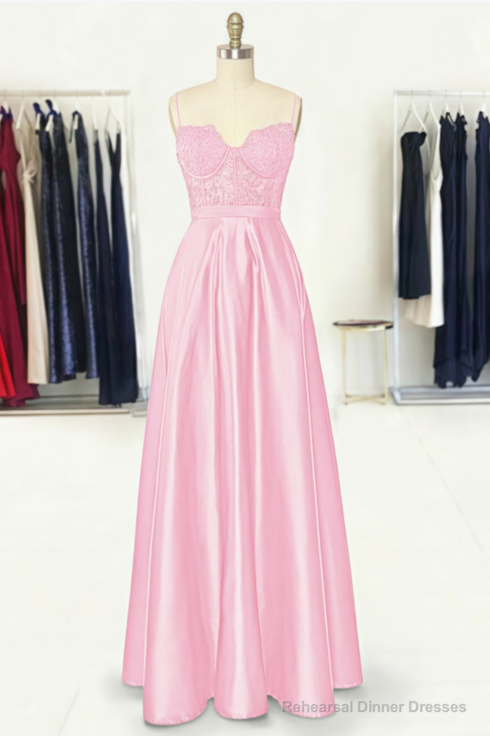 Expert Perspective: This dress features an A-line silhouette, sweetheart neckline, sleeveless design, and zipper back closure. Made of luxurious satin fabric, it is adorned with delicate appliques and convenient pockets. The long/floor-length skirt is fully lined and includes a built-in bra and boning for a secure fit.