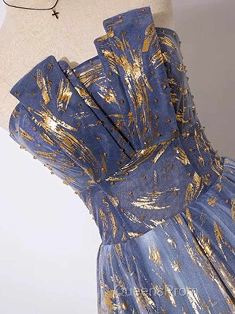 A-Line Tulle Lace Blue Short Evening Prom Dress, Cute Blue Homecoming Dress