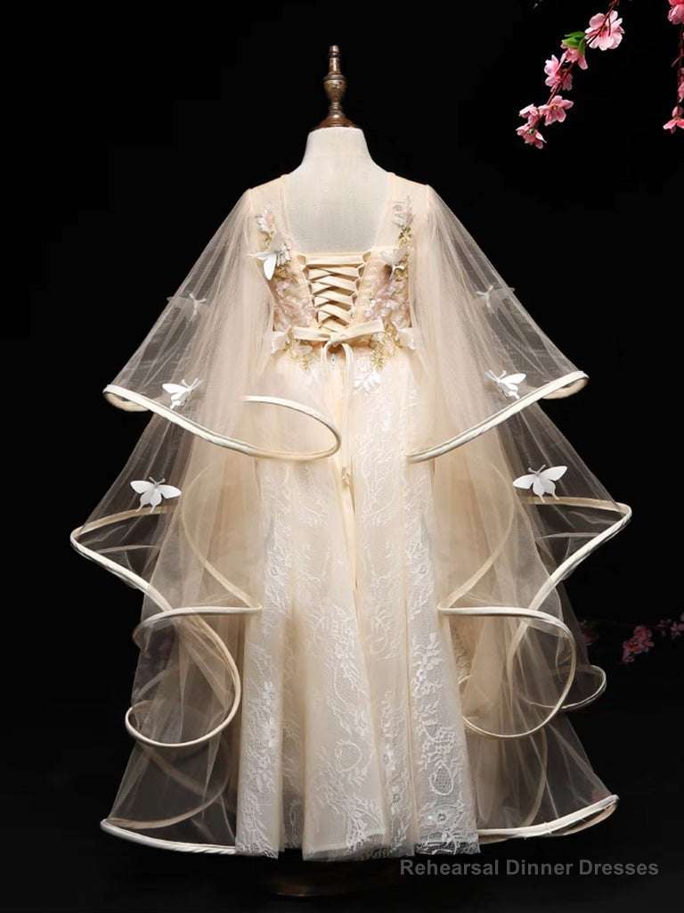 A-Line Tulle Lace Butterfly Champagne Flower Girl Dress
