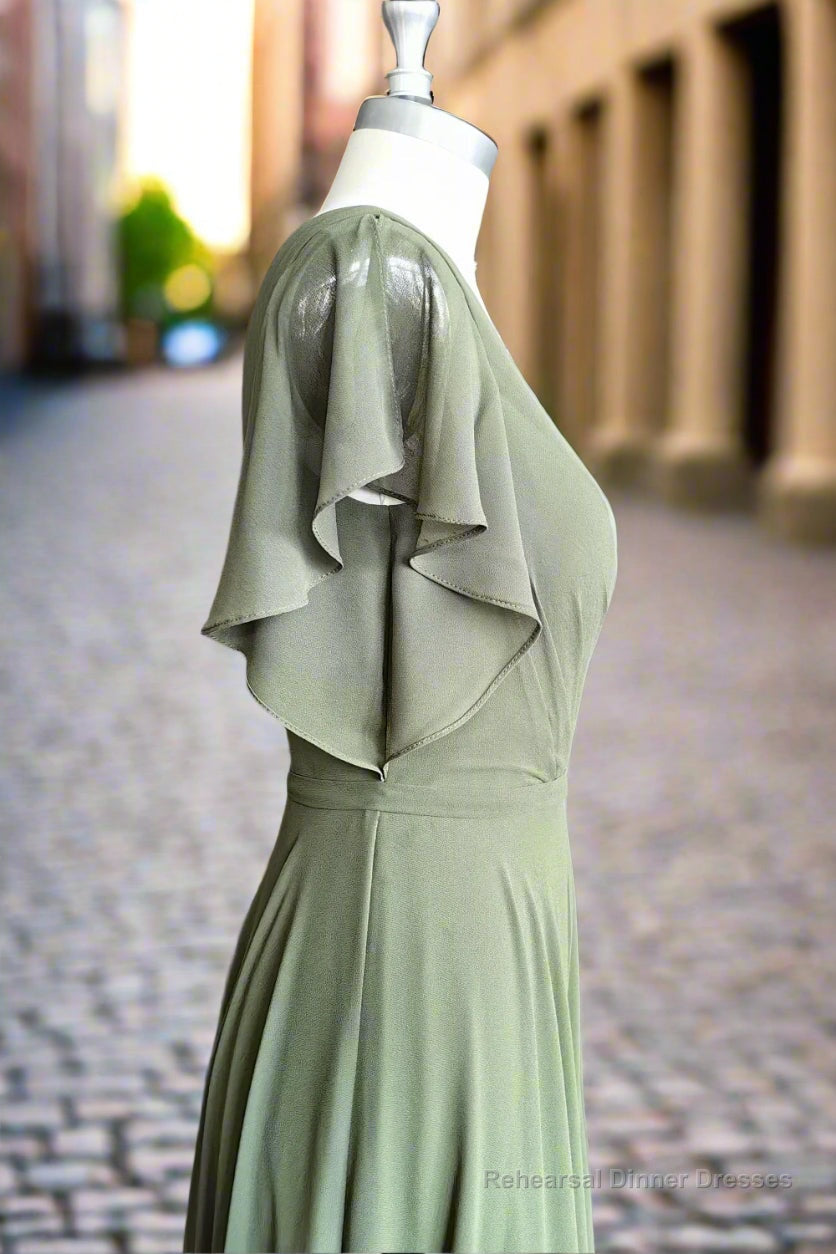 A-line V-neck Ruffle Sleeves Pleats Chiffon Bridesmaid Dress with Ruffles