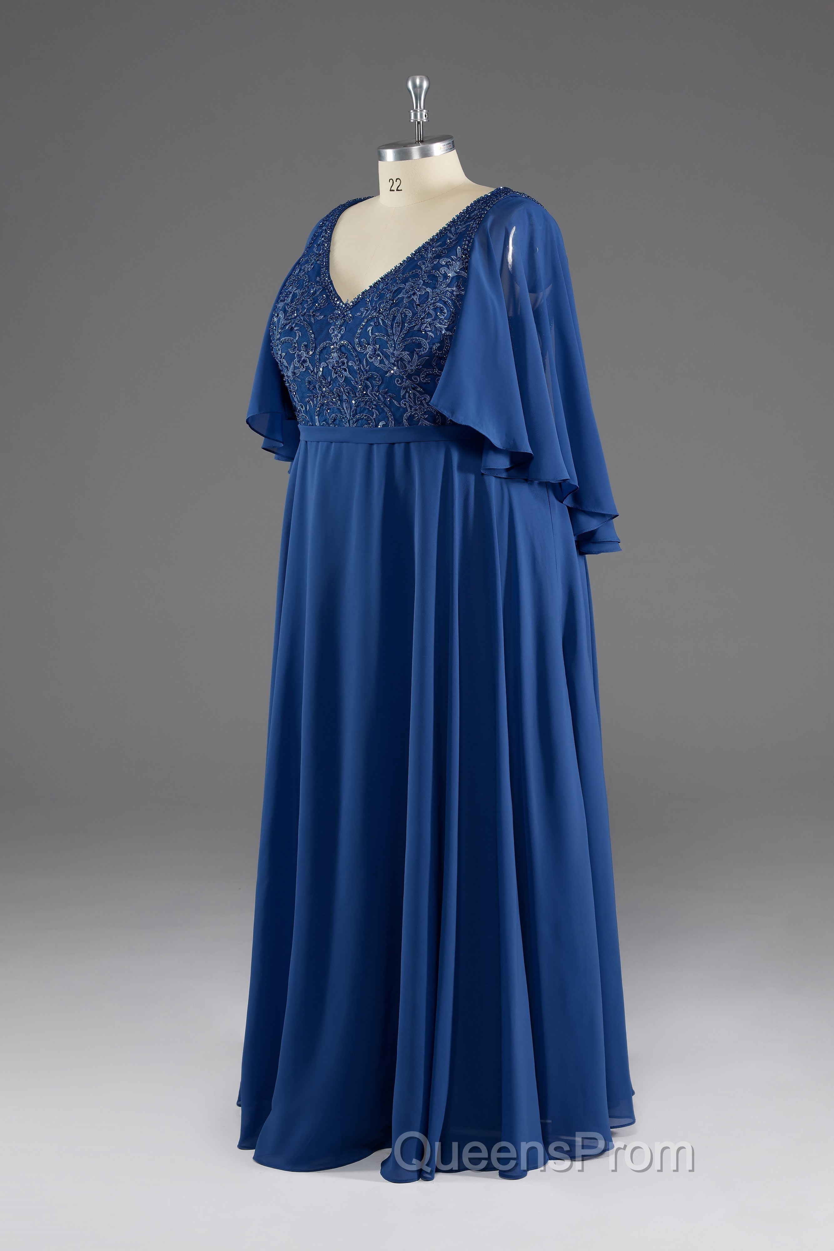 A-line V-Neck Short Sleeves Chiffon Mother of The Bride Dress