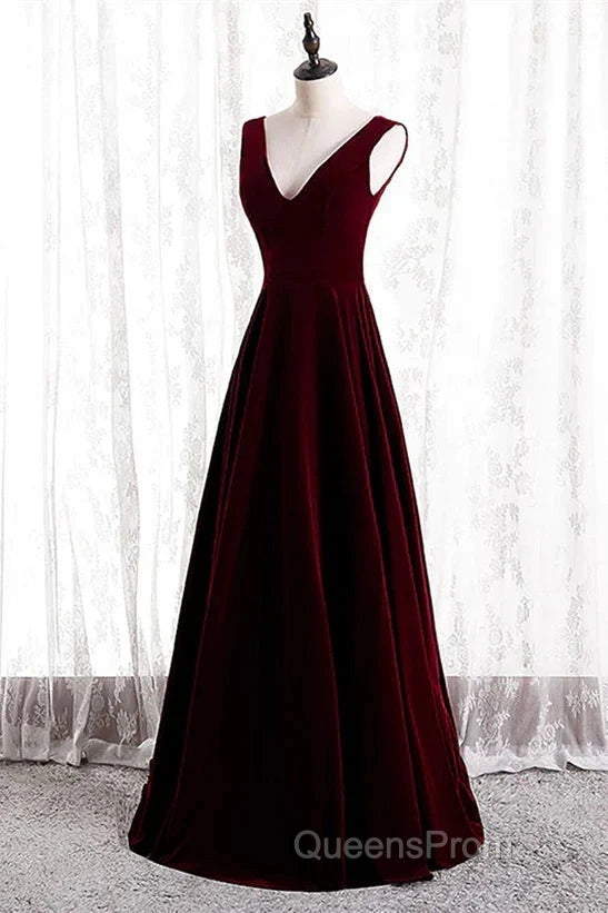 A-Line Velvet V-Neckline Sleeveless Long Party Dress Evening Prom Dress Bridesmaid Dress