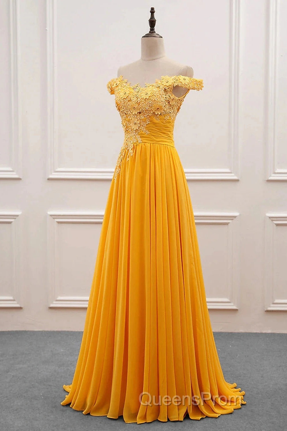 A-Line Wedding Guest Dress Floral Dress Evening Prom Wedding Party Sweep / Brush Train Sleeveless Off Shoulder Chiffon With Appliques