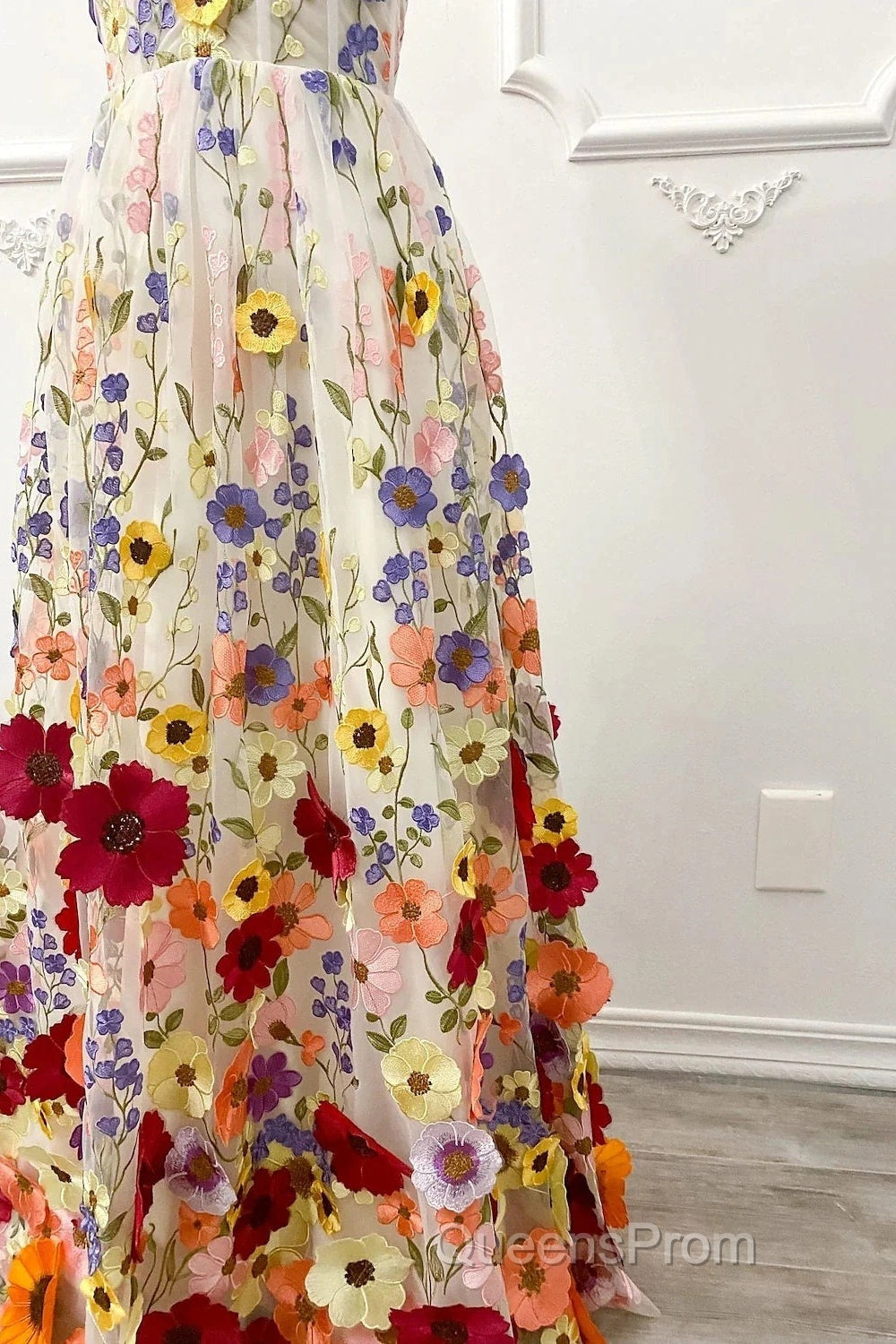 A-Line Wedding Guest Dress Floral Dress Wedding Guest Floor Length Sleeveless Illusion Neck Wednesday Addams Family Cotton Backless With Embroidery Appliques