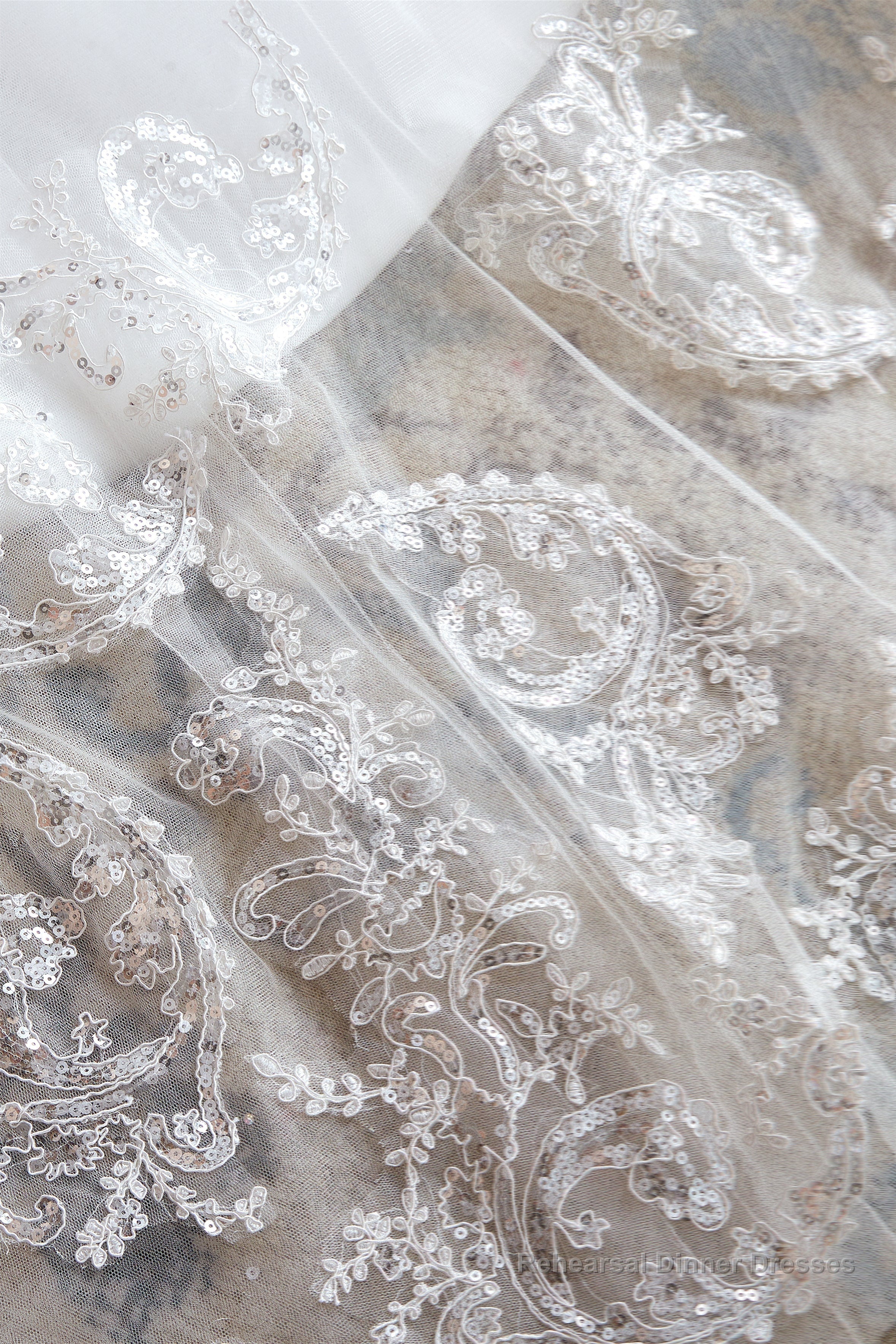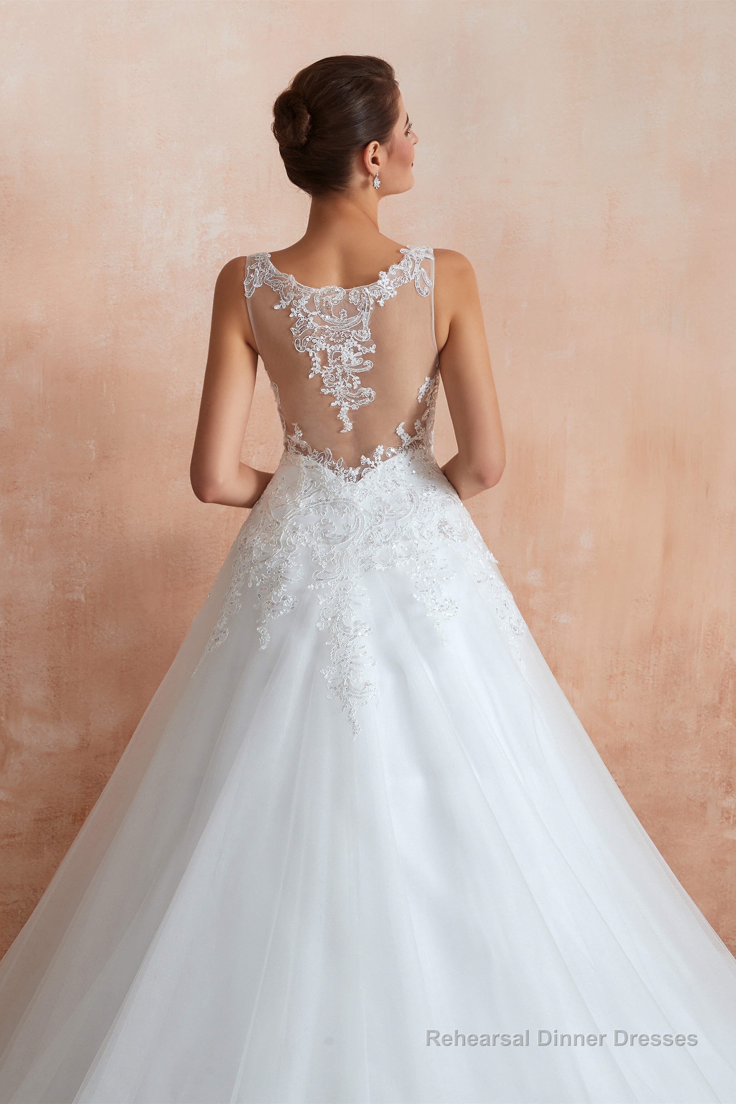 A-line with Sequined Appliques Tulle Illusion Back Wedding Dresses