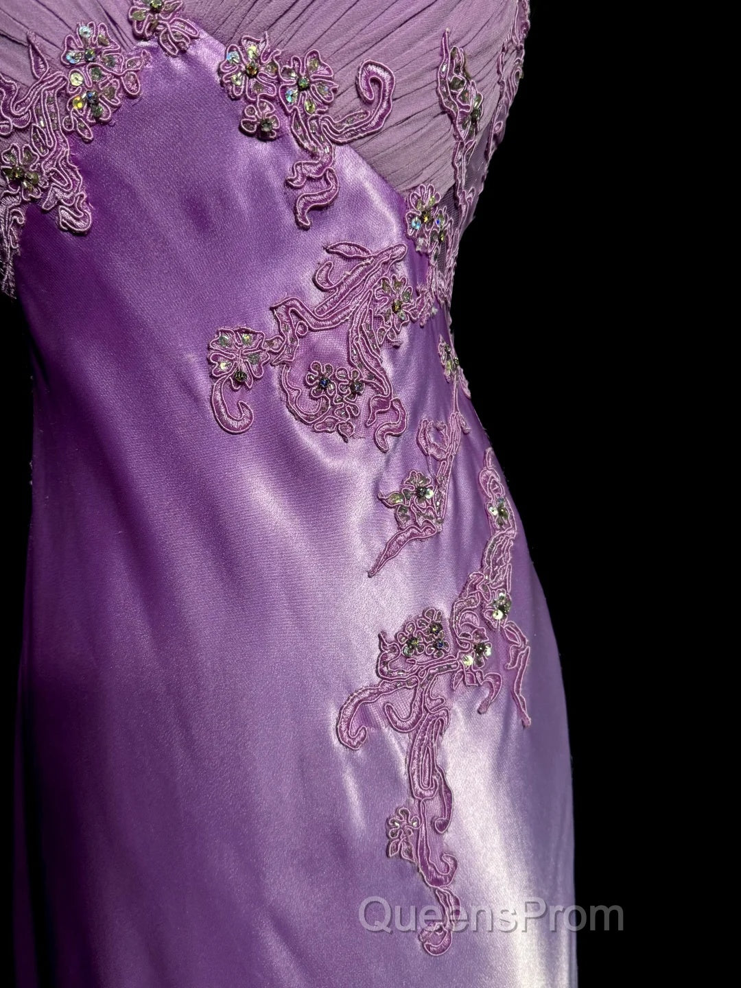 Aesthetic A Line Halter Neckline Lilac Satin Evening Prom Dress Ruffle Long Party Dress