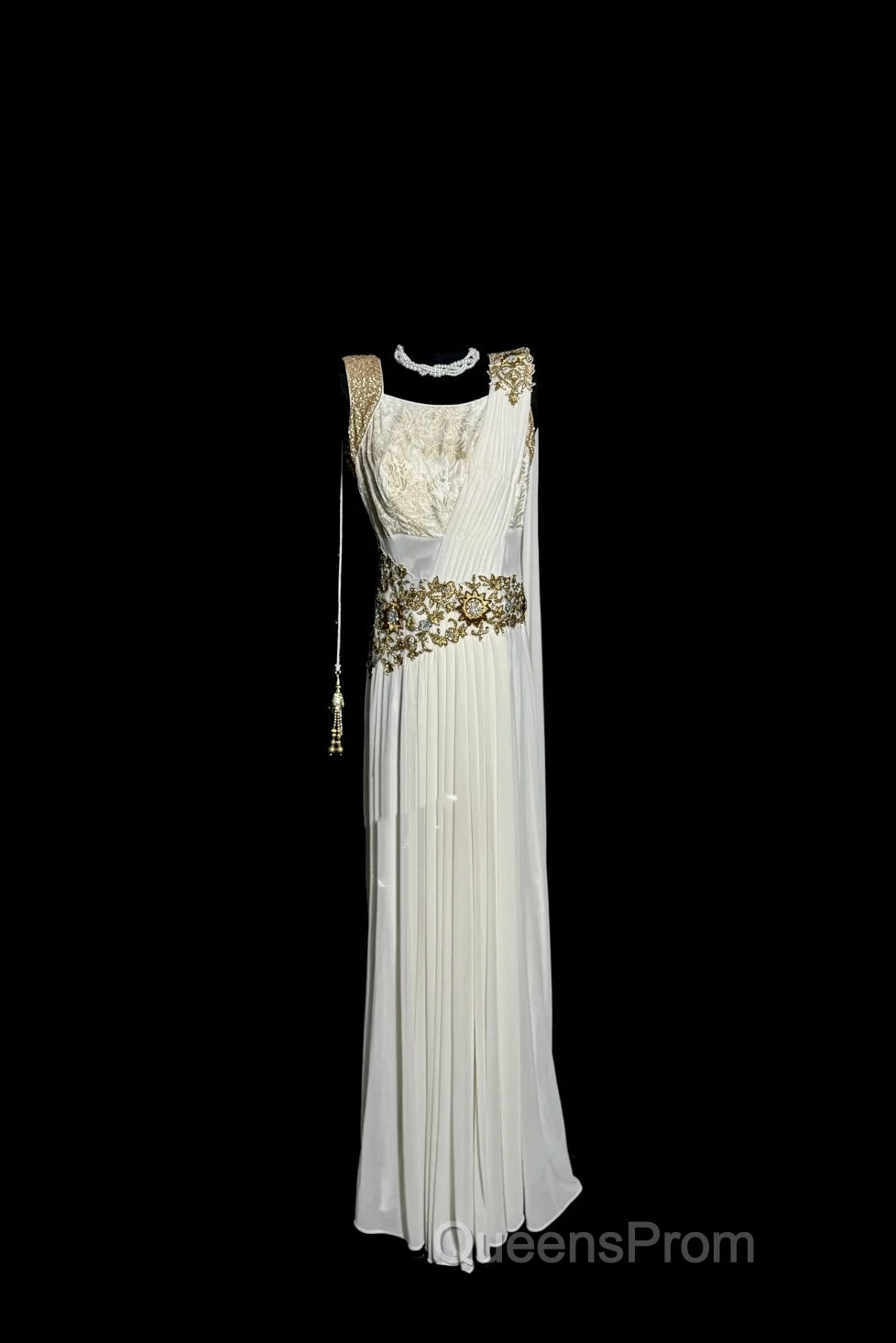 Aesthetic A Line Square Neckline White Chiffon Evening Prom Dress Ruffle Long Party Dress