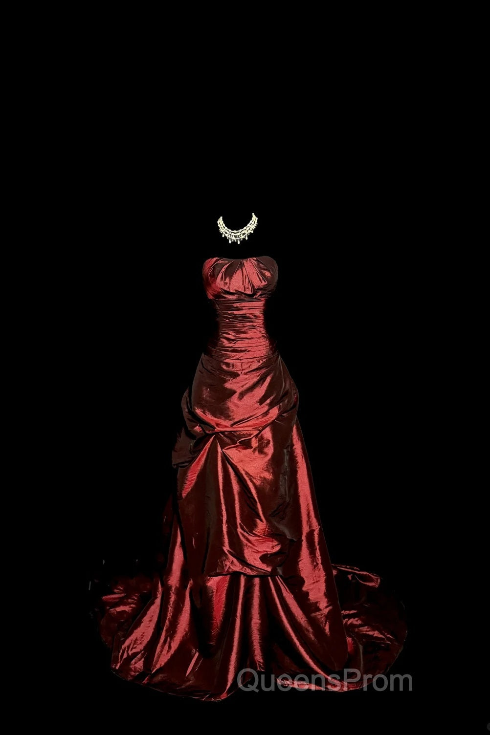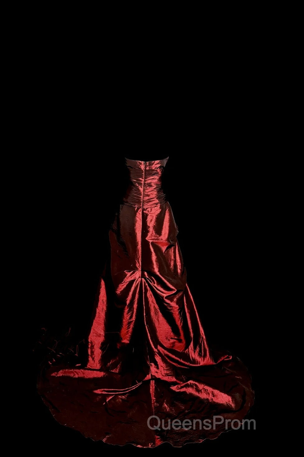 Aesthetic Ball Gown Strapless Burgundy Taffeta Evening Prom Dress Ruffle Long Party Dress