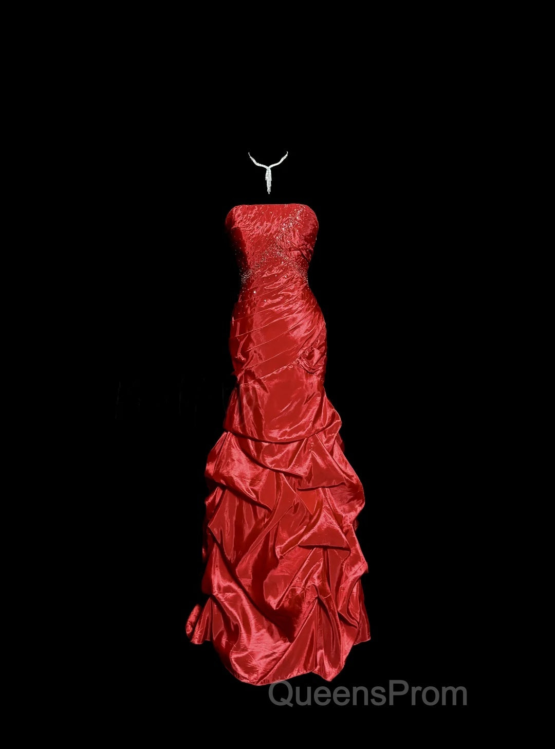 Aesthetic Mermaid Strapless Neckline Red Taffeta Evening Prom Dress Ruffle Long Party Dress