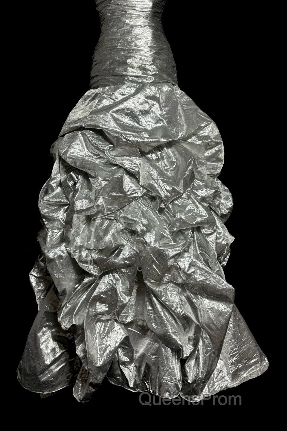 Aesthetic Mermaid Sweetheart Neckline Gray Taffeta Evening Prom Dress Ruffle Long Party Dress