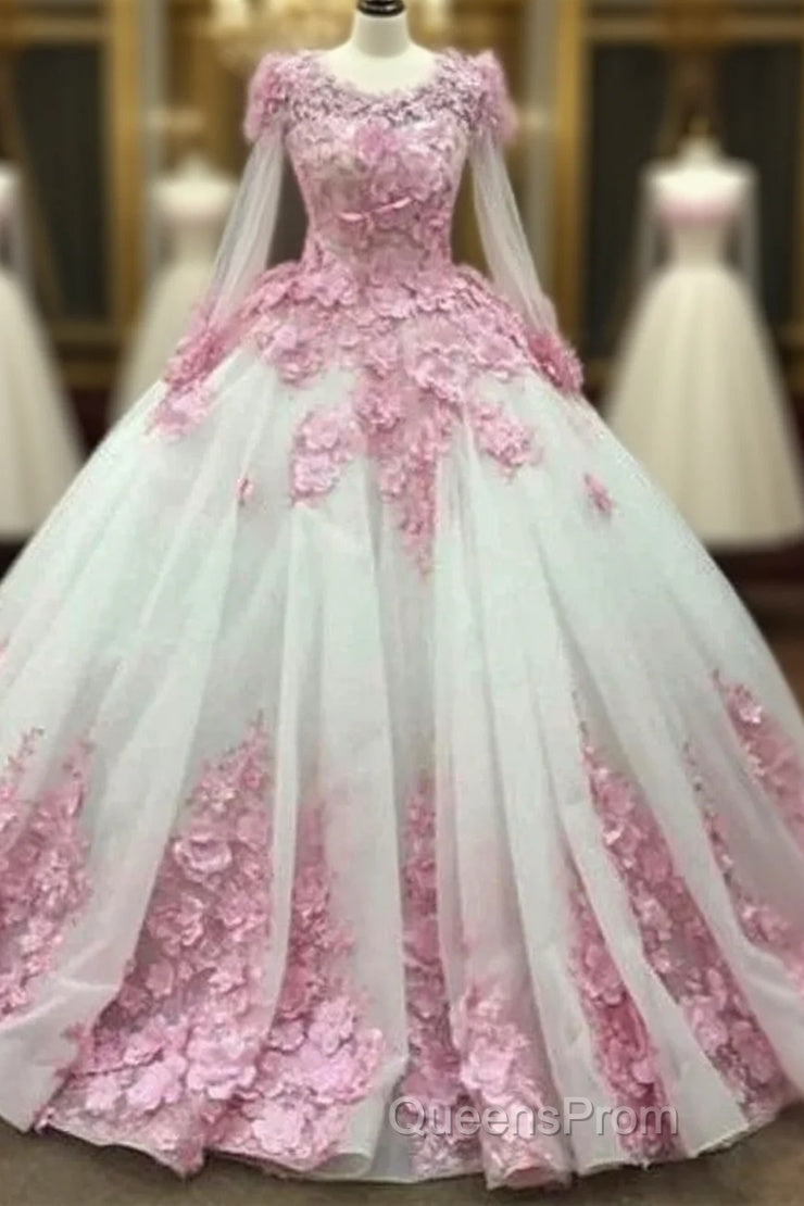 Ball Gown Long Sleeve Tulle Evening Prom Flowers Wedding Dress