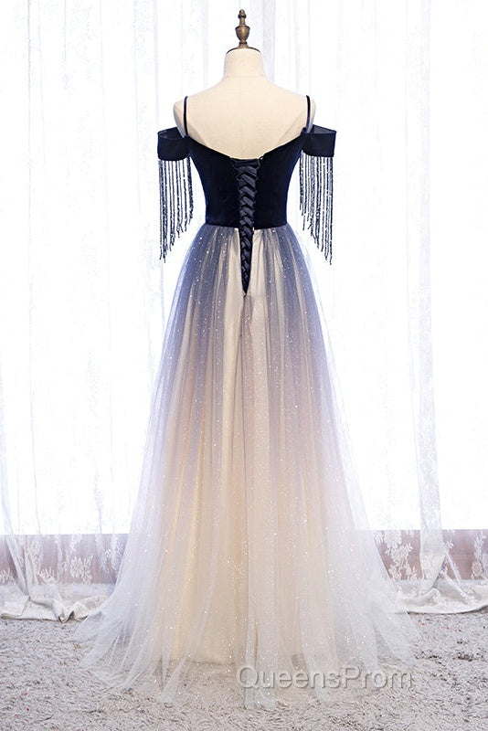 Beautiful Blue Gradient Tulle Long Party Dress,A-Line Off Shoulder Formal Dress