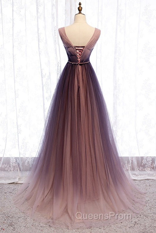 Beautiful Gradient V-Neckline Tulle Long Evening Prom Dress Party Dress, Gradient Evening Gown