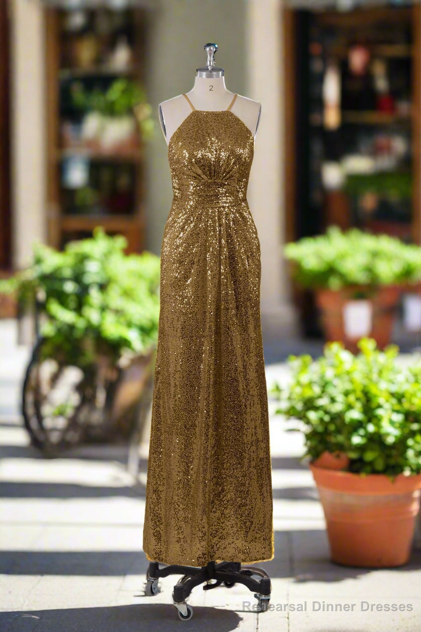 Beautiful Sequins Halter Hourglass Bridesmaid Dresses