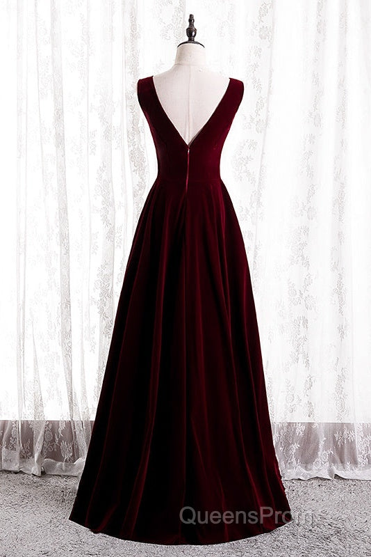 Beautiful Wine Red Simple Long A-Ine Wedding Party Dress, Dark Red Evening Prom Dress