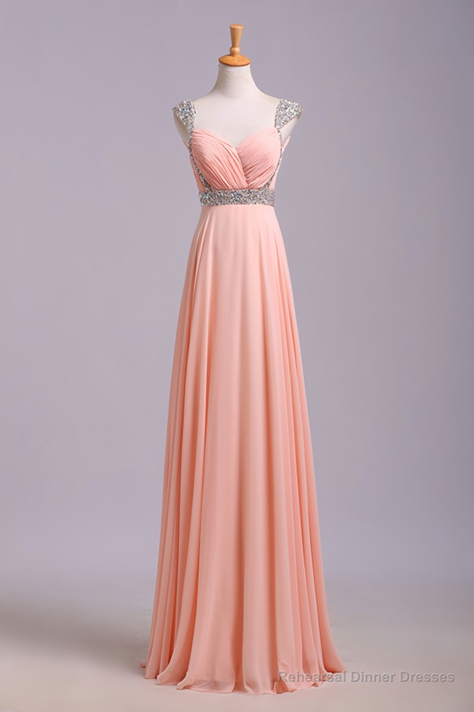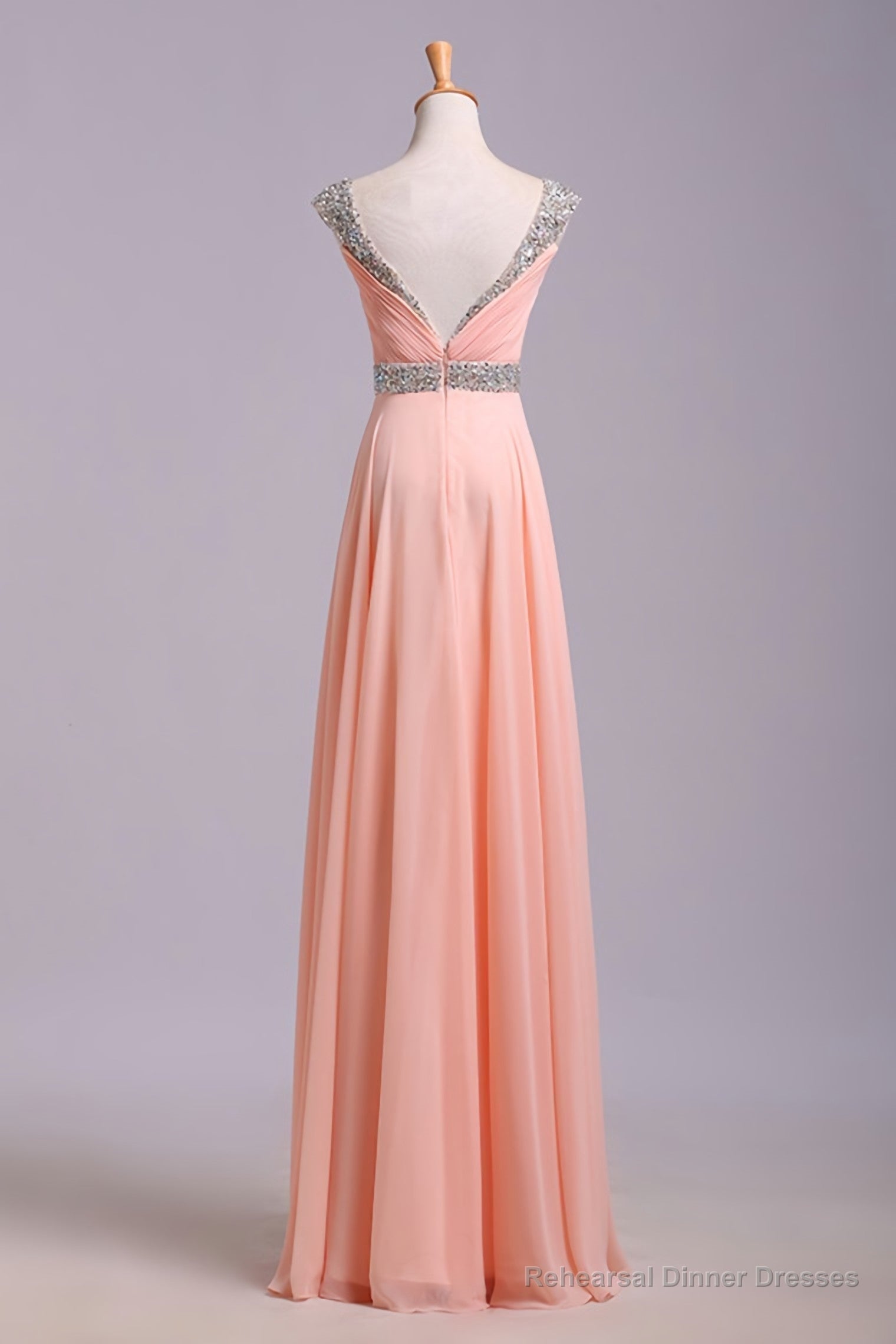 Best Selling Prom Dresses, A Line V Neck Floor Length Chiffon Zipper Back