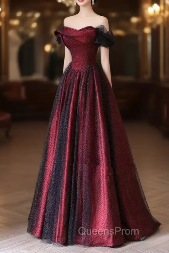 Black and Red Long Party Dress, Off Shoulder Tulle A-line Evening Prom Dress