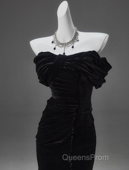 Black Mermaid Off-The-Shoulder Velvet Long Evening Prom Dress, Elegant Quinceanera Dress