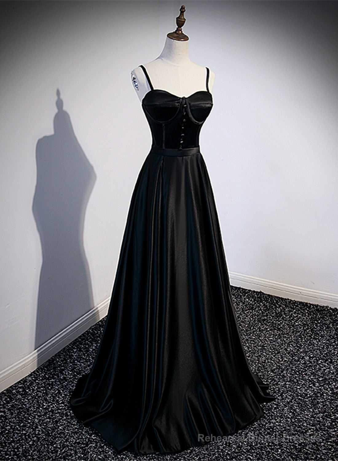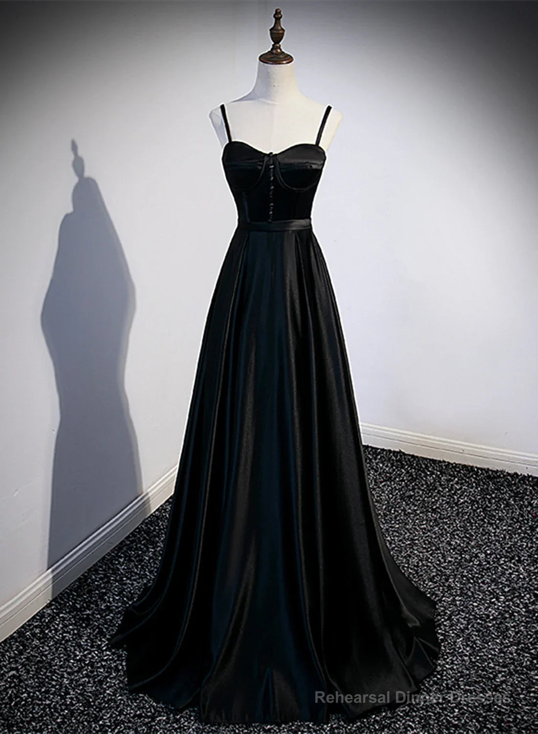 Black Satin Long Party Dress Black Simple Junior Prom Dress prom dresses shops