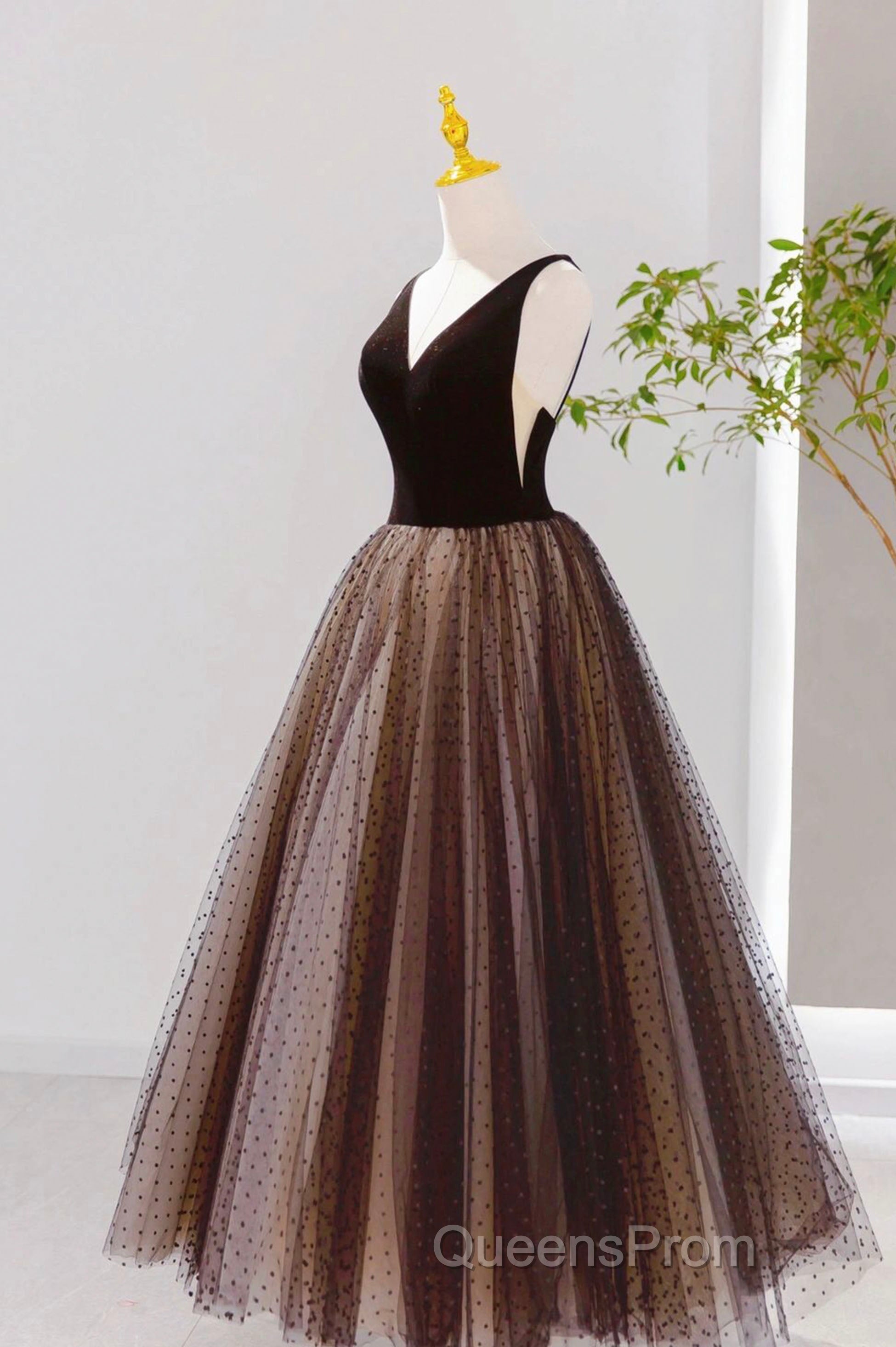 Black V-Neck Tulle Short Evening Prom Dress, A-Line Black Tea Length Party Dress