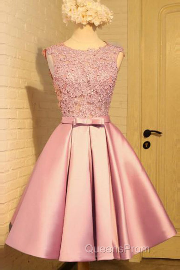 Blue A Line Princess V Neck Backless Appliques Homecoming Dress