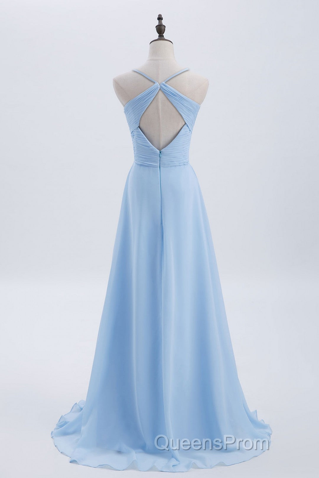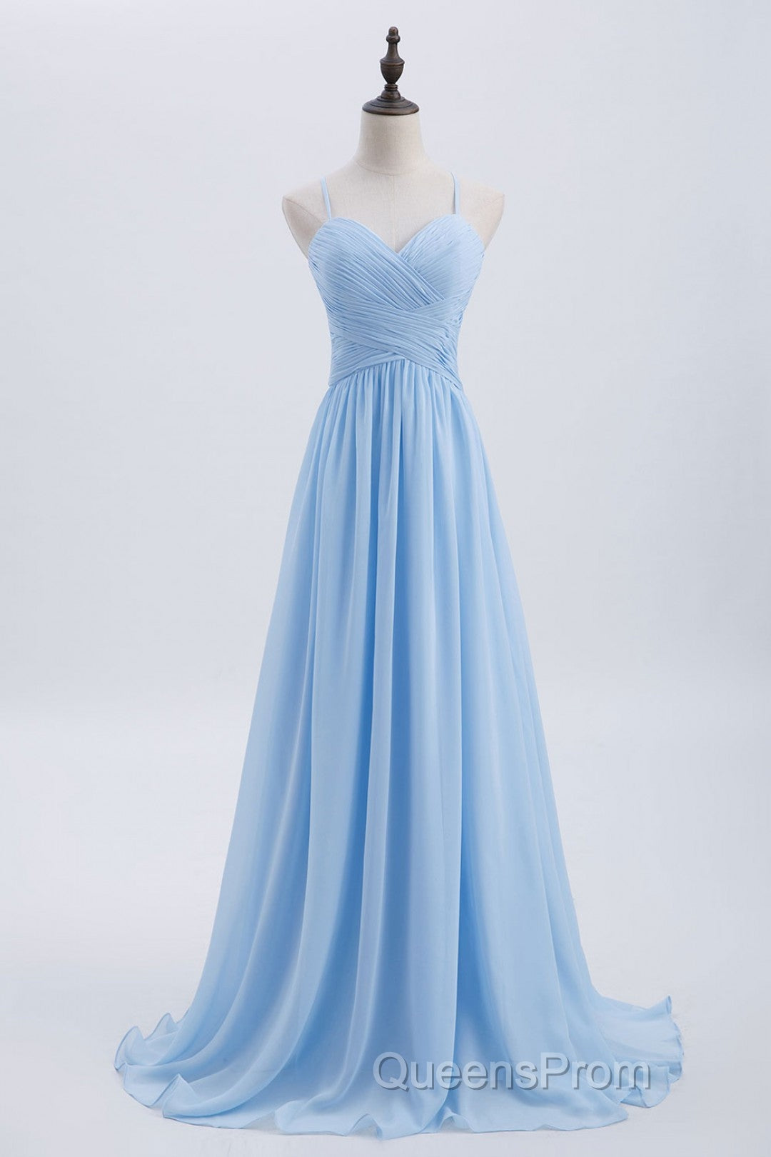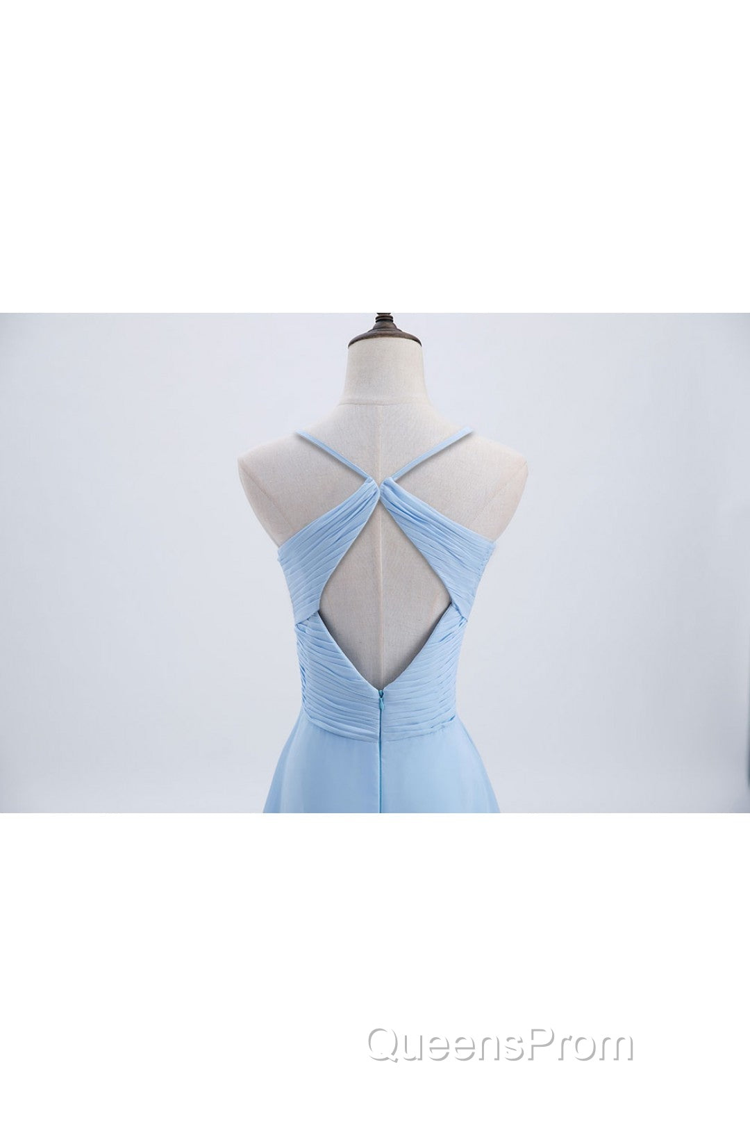 Blue Pleated Straps Chiffon Long Bridesmaid Dress