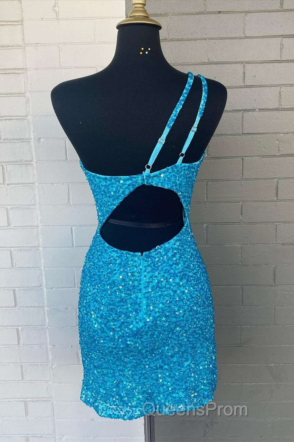 Blue Sequin One-Shoulder Cutout Bodycon Homecoming Dress