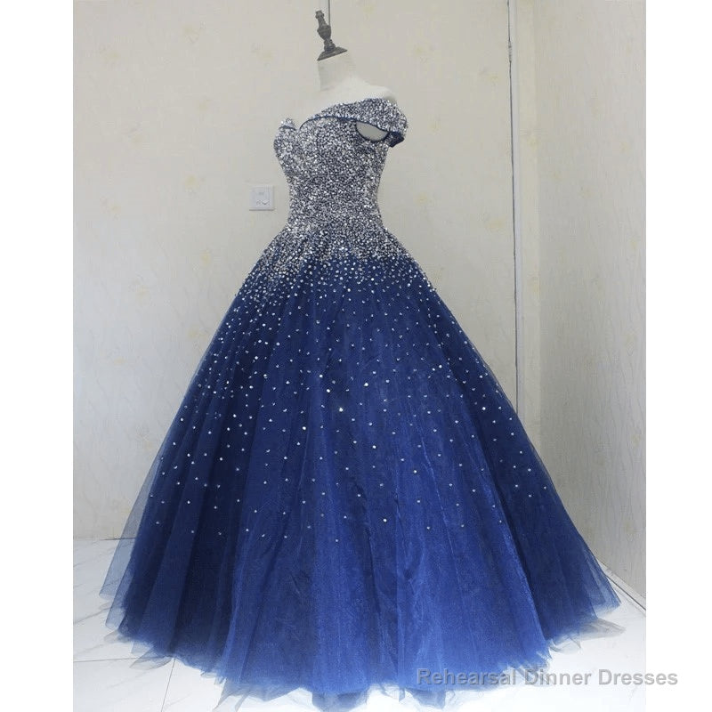 Blue Sequins Ball Gown Off Shoulder Party Dress Blue Sweet 16 Gown prom dresses shops