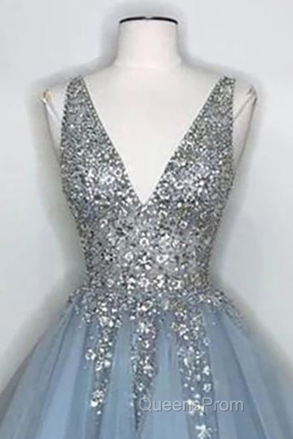Blue V Neck Homecoming Dress With Beadings