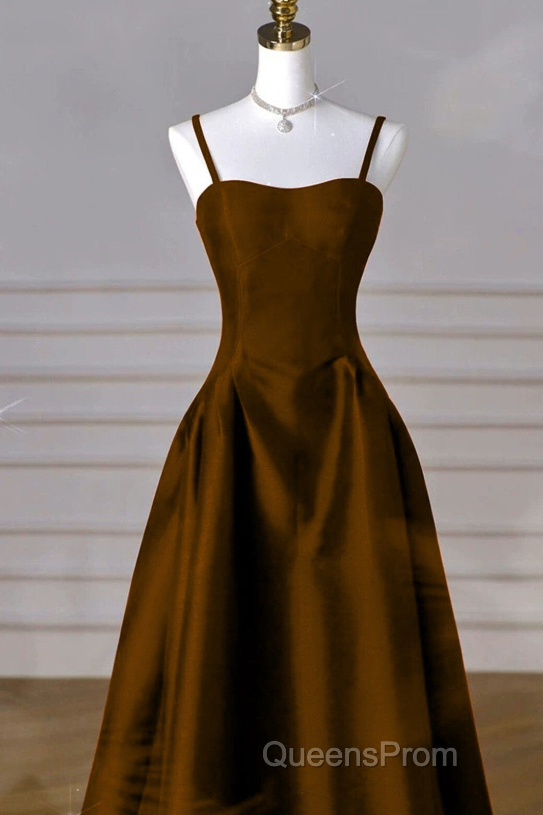 Brown Satin A-Line Sweetheart Long Formal Dress, Simple Brown Evening Dress