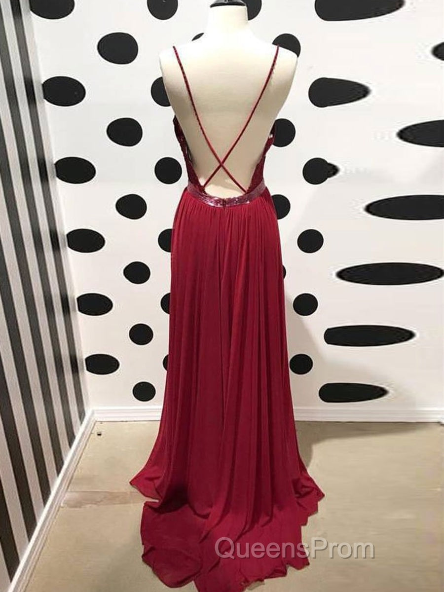 Burgundy A Line V Neck Backless Lace Tulle Long Evening Prom Dress, Burgundy Lace Formal Dress, Burgundy Evening Dress
