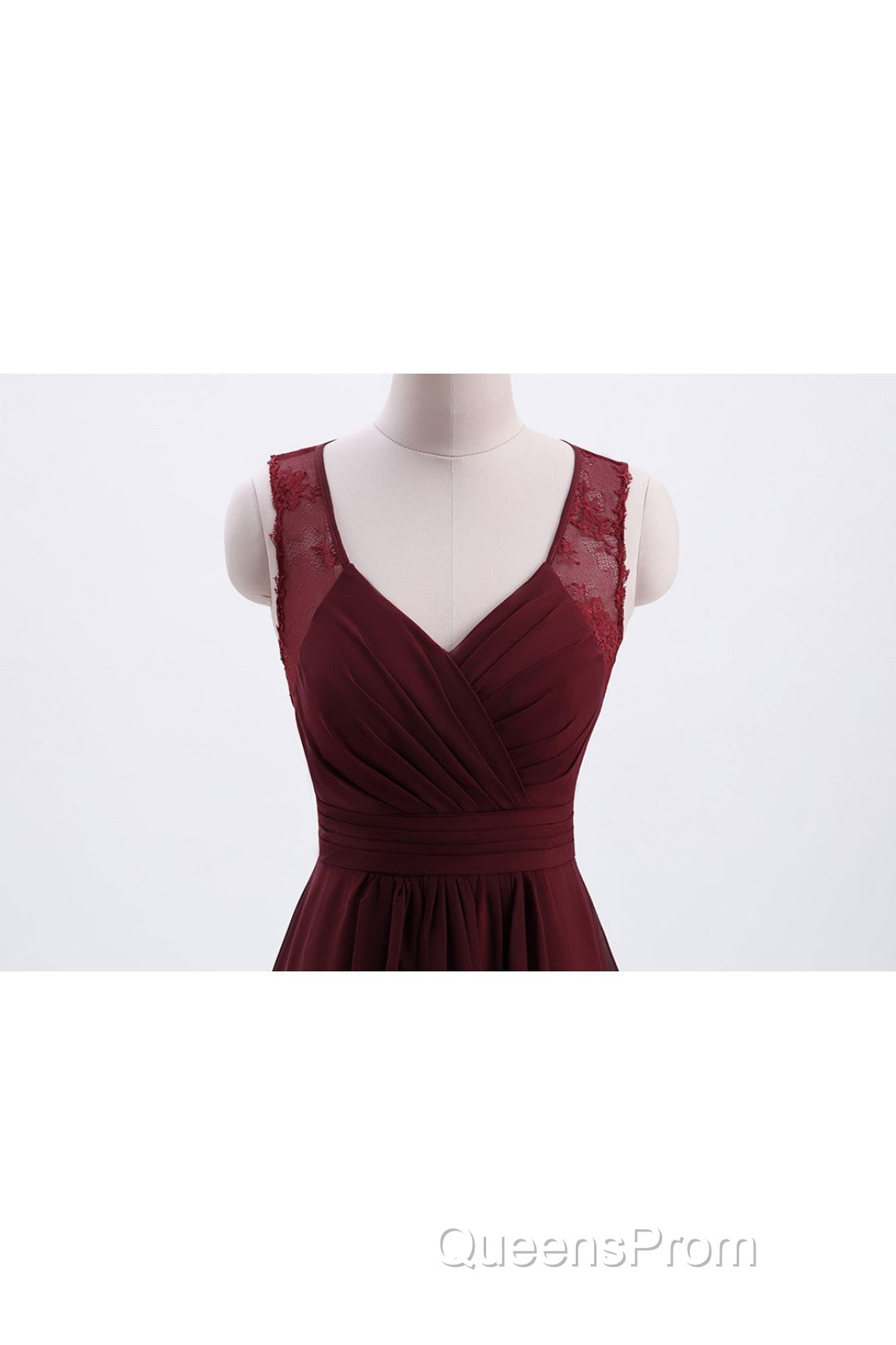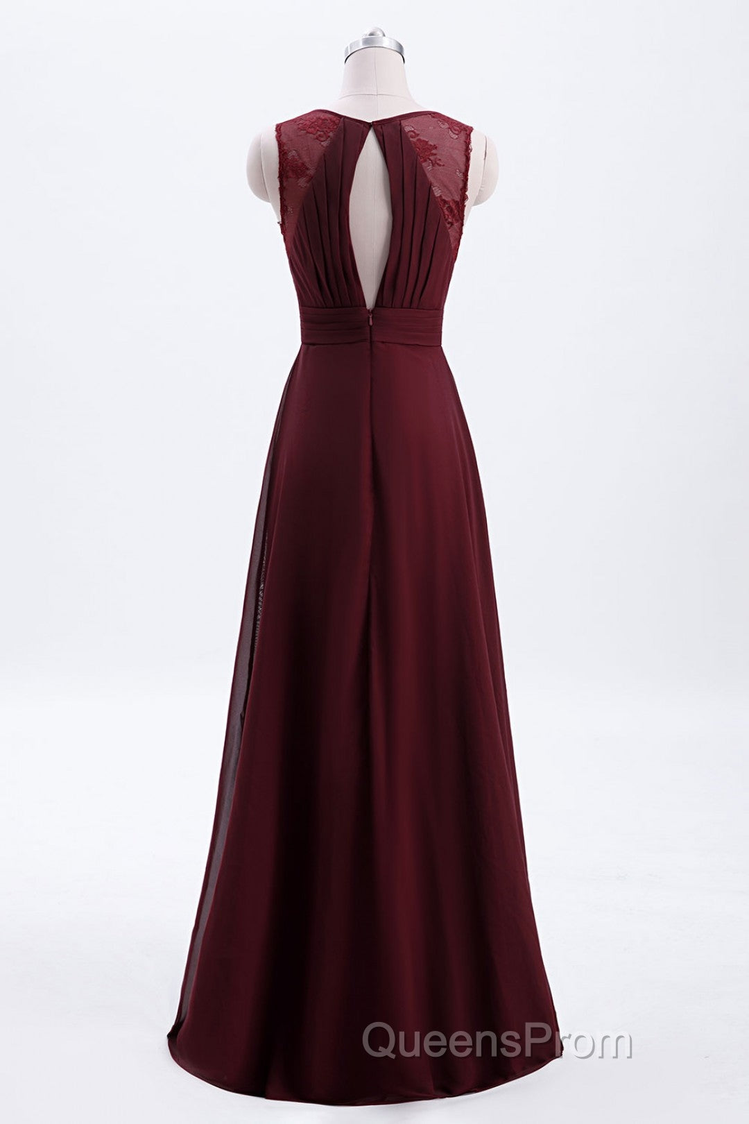 Burgundy Chiffon A-line Pleated Long Bridesmaid Dress
