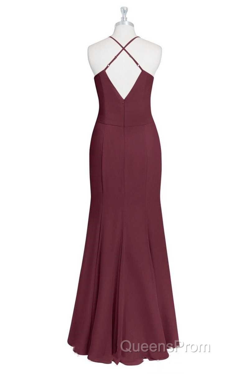 Burgundy Chiffon Cross-Back Mermaid Long Bridesmaid Dress