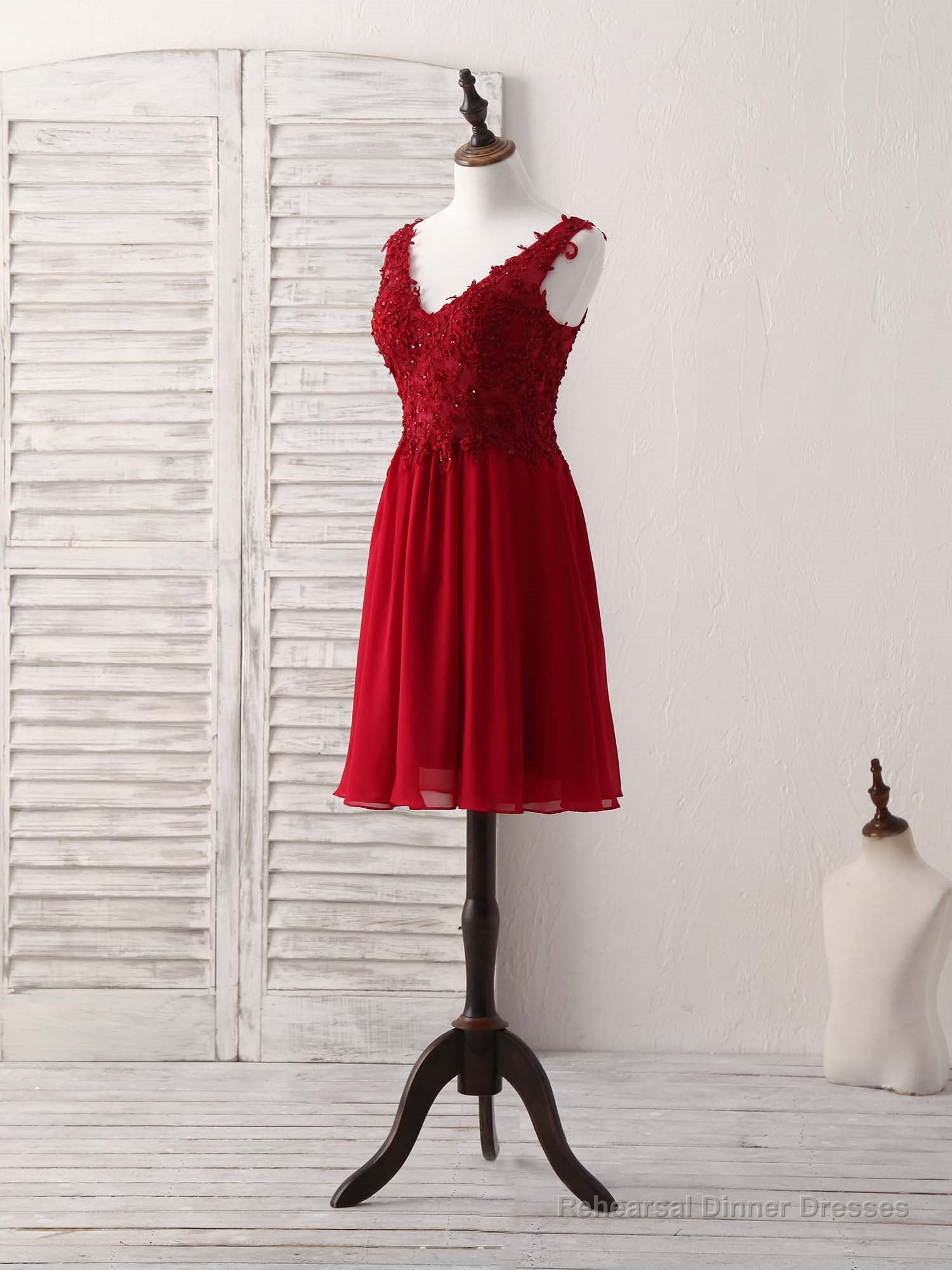 Burgundy Chiffon Lace Short Prom Dress Burgundy Homecoming Dress