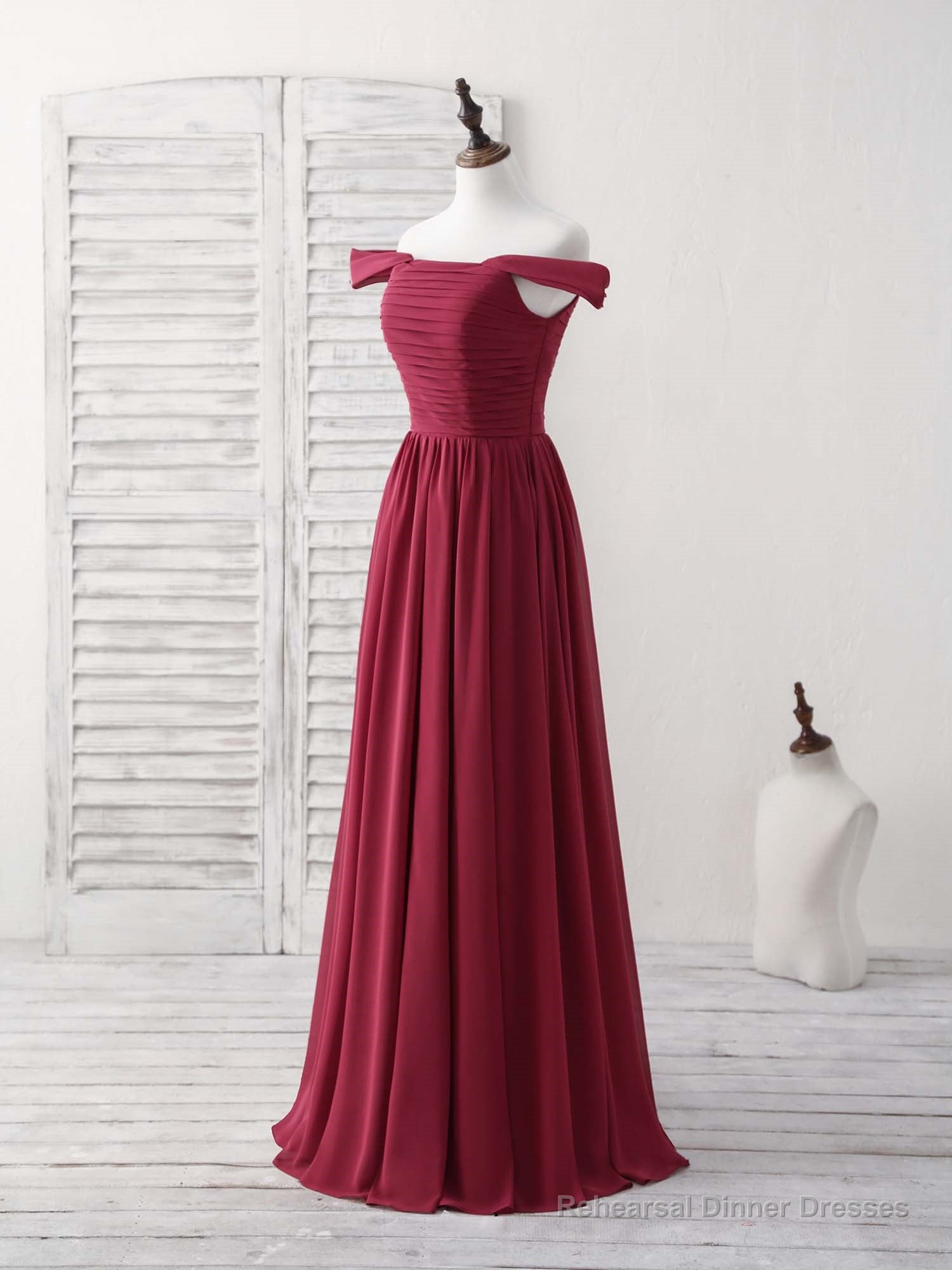 Burgundy Chiffon Off Shoulder Long Prom Dress Burgundy Bridesmaid Dress