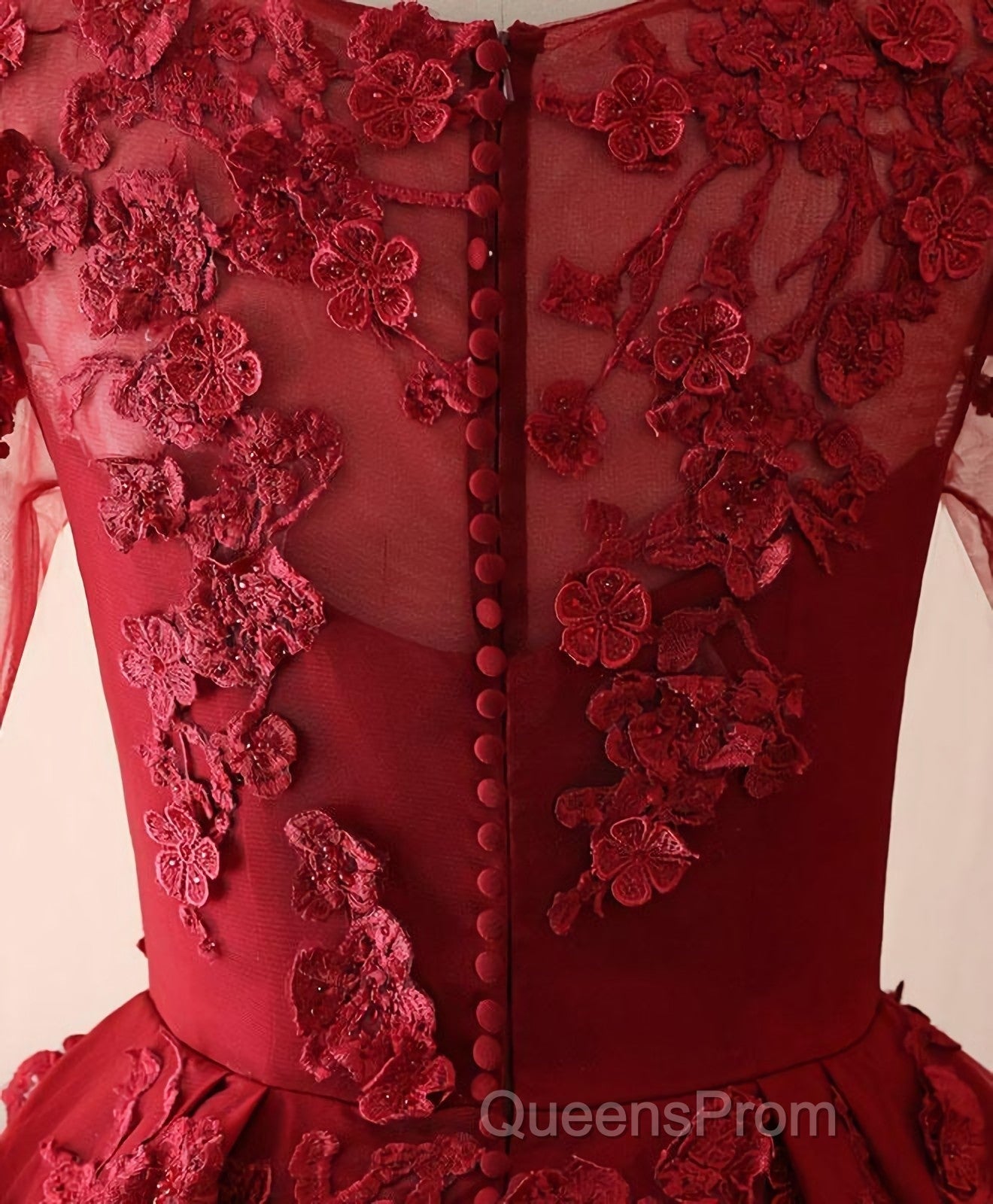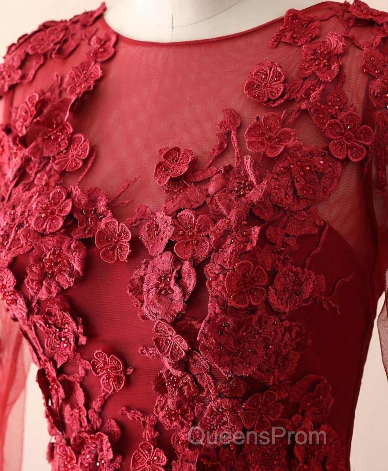 Burgundy Lace Satin Long Evening Prom Dress, Burgundy Lace Evening Dress