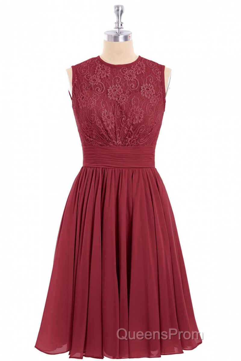 Burgundy Lace Sleeveless Backless A-Line Short Bridesmaid Dress