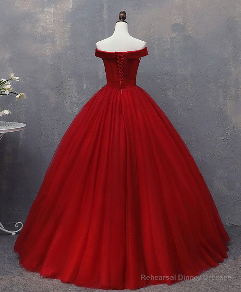 Burgundy Tulle Lace Off Shoulder Long Prom Gown Burgundy Evening Dress