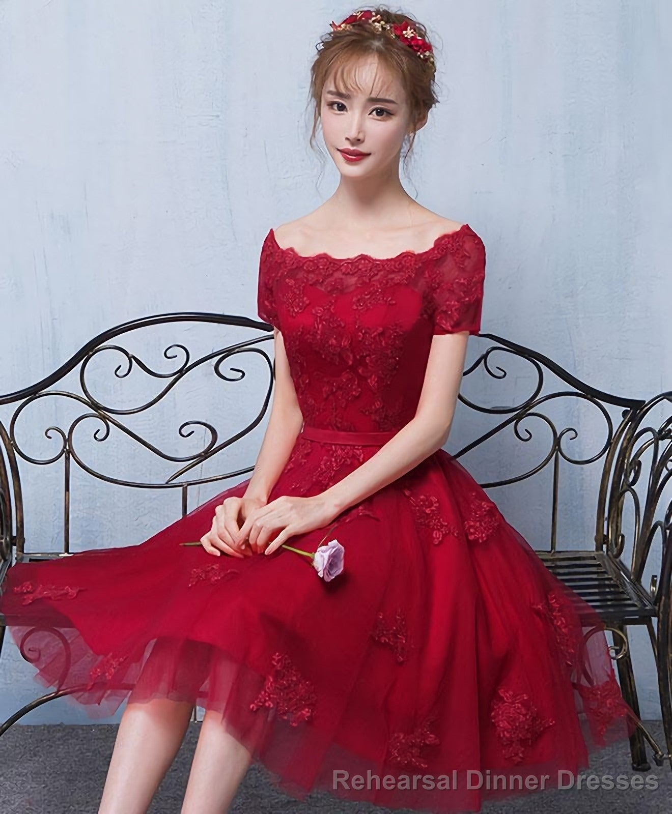 Burgundy Tulle Lace Short Prom Dress Burgundy Lace Homecoming Dress